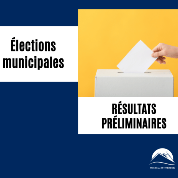 Stoneham-et-Tewkesbury, le 3 novembre 2025 – 16 h 15 – La municipalité des cantons unis de Stoneham-et-Tewkesbury annonce les résultats préliminaires des élections municipales du 2 novembre 2025. Seuls trois postes de conseillers et conseillères étaient encore en lice puisque le maire, M. Sébastien Couture et trois conseillers municipaux des districts 2, 3 et 4, avaient été élus sans opposition le 3 octobre dernier, pour un second mandat de quatre ans.