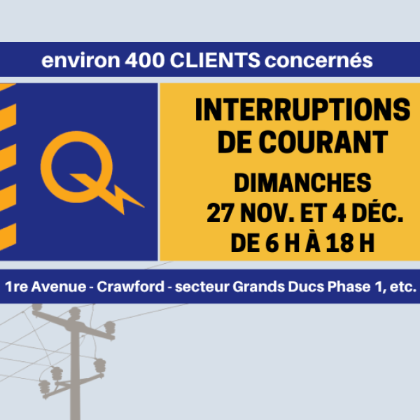 Des travaux essentiels visant le renforcement et la sécurisation du réseau électrique seront effectués sur deux jours à la municipalité de Stoneham-et-Tewkesbury, les dimanches 27 et 4 décembre prochains.