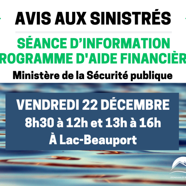 🔸En tant que SINISTRÉS DE STONEHAM-ET-TEWKESBURY, VOUS ÊTES LES BIENVENUS à Lac-Beauport pour rencontrer les analystes du MSP.